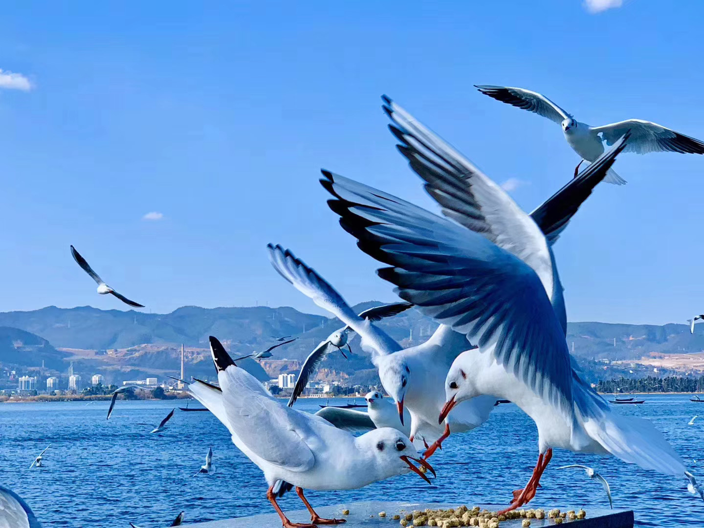昆明滇池春光無(wú)限 海鷗群飛 滇池環(huán)境保護(hù)初見(jiàn)成效 昆明滇池會(huì)展中心成新寵