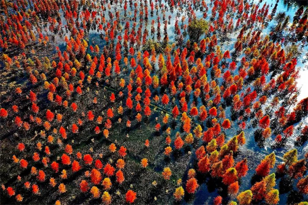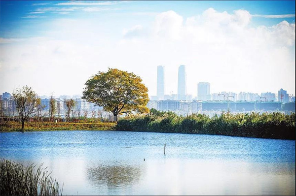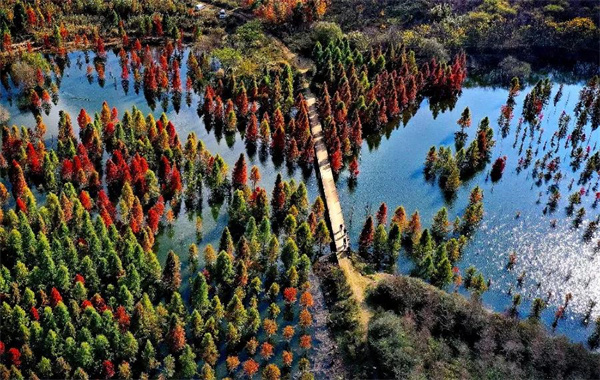 清澈的水面上倒映著一排排整齊的水杉樹,映襯著冬日溫暖的陽光,似莫奈筆下一幅色彩斑斕、濃墨重彩的油畫。不時有幾只白鷺飛過,或在水面捕食,或在林間嬉戲……這是一個能讓你靜下來,慢下來,悠閑自在,享受生活的自然之地。