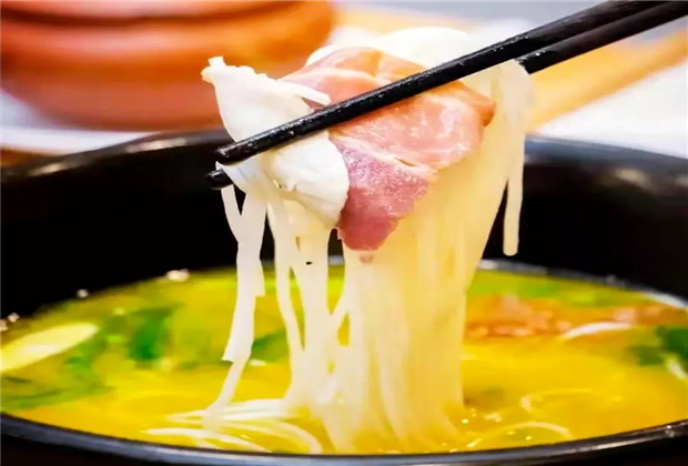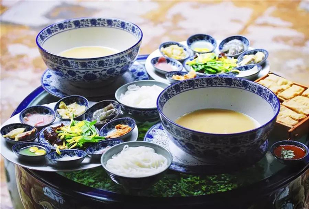 “食品中的尤物”,昆明文青鼻祖,汪曾祺先生曾這樣評(píng)價(jià)云南的過(guò)橋米線。依據(jù)傳統(tǒng)熬制8小時(shí)以上的湯底,滾熱中香氣撲鼻,把鵪鶉蛋、火腿片、里脊肉、烏魚(yú)片、香酥、草芽和豌豆尖等等豐富的精選食材按次序燙熟,簡(jiǎn)直像是完成一種喚醒食欲的儀式——這是最具盛名的云南菜之一。吃之前喝一口湯,“呲溜”一口米線,味覺(jué)層次豐富,鮮美卻不燥舌,怎么會(huì)不討人口腹歡喜呢?
