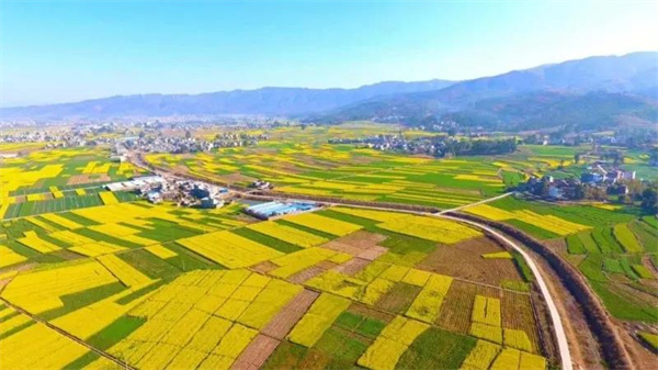 姚安過(guò)境公路沿線也有大面積的油菜花,會(huì)在1月中旬至3月份綿延而來(lái),自觀音寺一直北上,姚安壩子便是一片壯觀的金色花海。