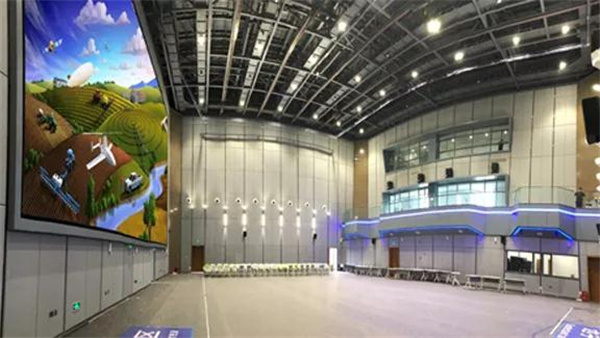 共享大廳,建筑面積超1000余平米,可容納600人以上;通高超過12米,設置220平米(20m*11m)超大屏幕,12個激光頭(3*4)矩陣融合激光投影,為目前云南單體最大最高演示廳,配備室內光學運動捕捉系統(tǒng)和運動吊掛系統(tǒng)及防護網(wǎng)。可進行動態(tài)捕捉和無人機飛行研究等科研試驗;可開展航空科普、大型會議、培訓、講座、產(chǎn)品展示推薦會、文體娛樂等活動。