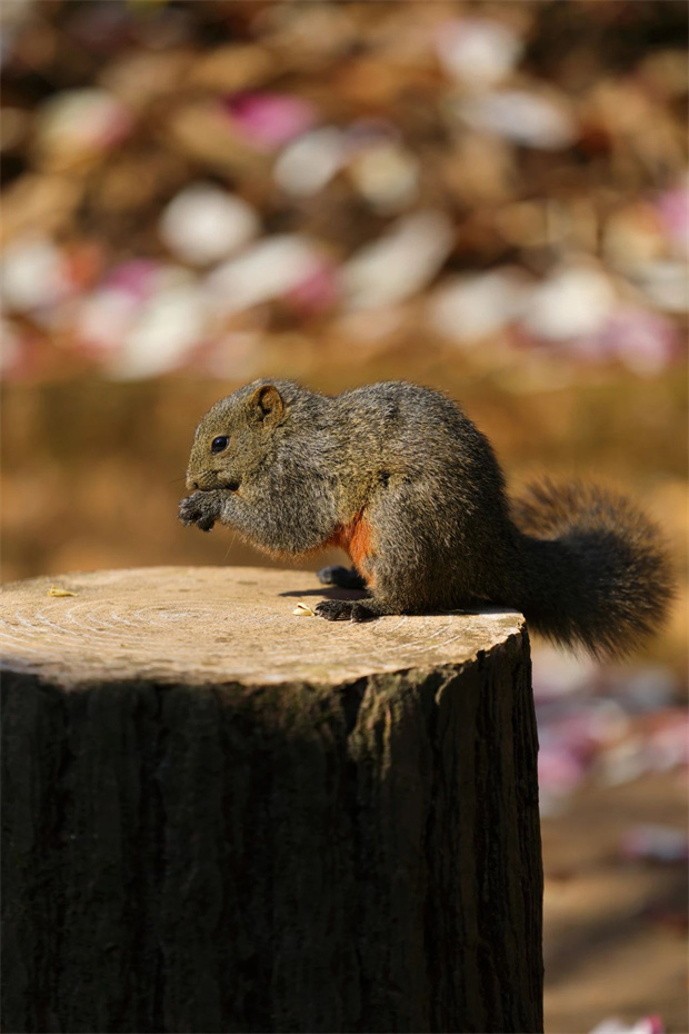 古亭旁、小徑邊,毛茸茸的小松鼠抱著松果張望,為這幅春日長(zhǎng)卷添上靈動(dòng)的注腳。就在春色滿園的微妙瞬間,仿佛有