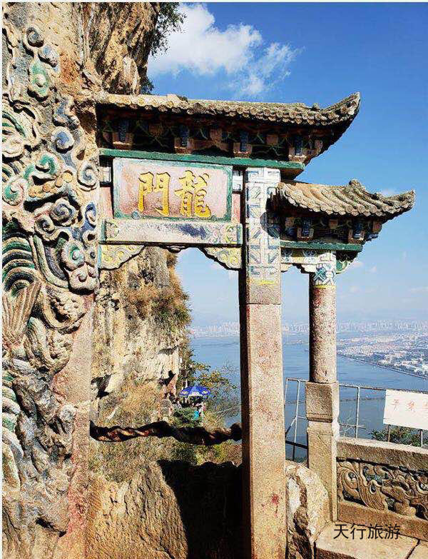 龍門位于西山的終端,北起三清閣,南至達天閣,是云南最大、最精美的道教石窟。龍門勝景以“奇、絕、險、幽”為特色,雄居昆明西山眾多的名勝之首,到昆明的游客都要去游覽,有“不到西山枉到昆明,不登龍門枉游西山”之說。龍門石窟地勢險峻,上接云天,下臨絕壁,被稱為西山之絕。