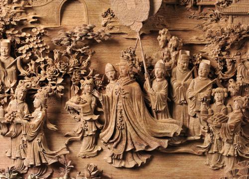 白族民居木雕畫:云南大理白族木雕是白族民居建筑中的重要組成部分。白族工匠巧妙地用木雕技藝進行裝飾,使建筑在使用和觀賞上達到最大限度的融合。在不斷吸收漢族先進的文化過程中,發展了具有鮮明特色的白族木雕工藝。