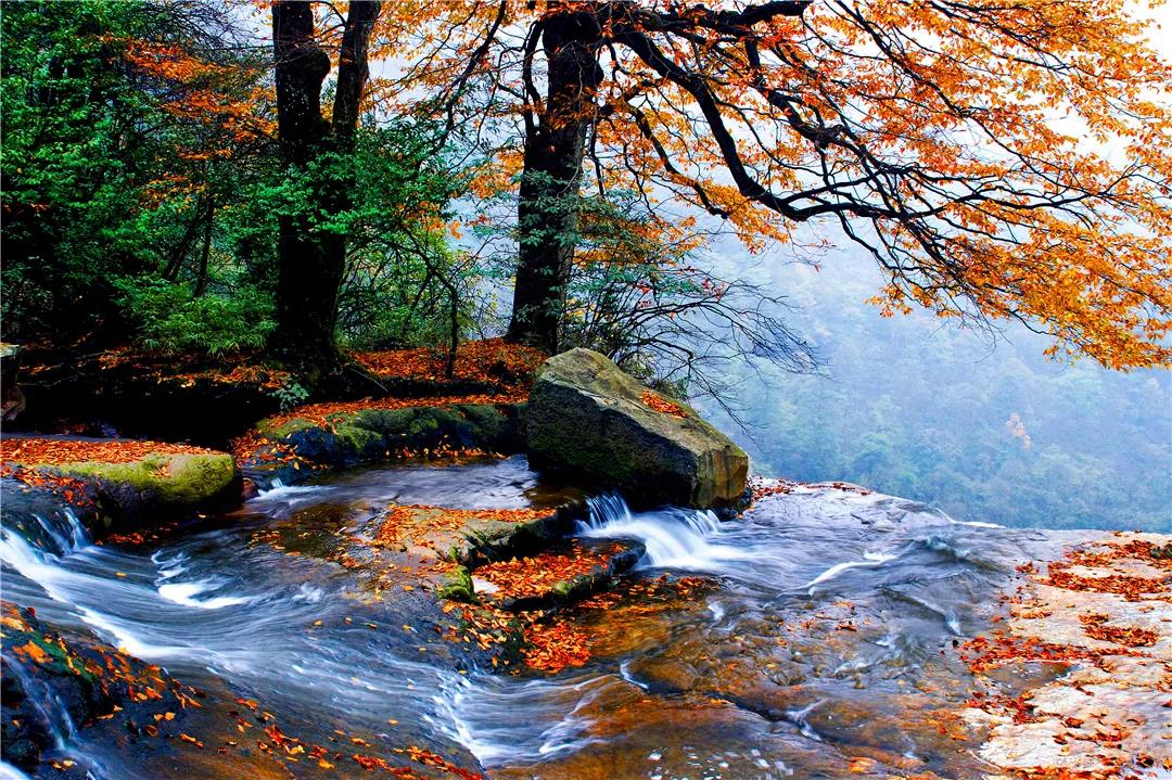 每至秋季,秋風就如被打翻的調色盤,將小草壩點綴得美輪美奐。滿山遍野的樹木,仿佛一夜間就變得或紅、或黃、或紫,多種顏色互相交融、點染映襯,讓小草壩綿延繁茂的原始叢林變成了一個個五彩繽紛、搖曳多姿的色彩世界,宛若一幅幅景色各異,美輪美奐的天然油畫。