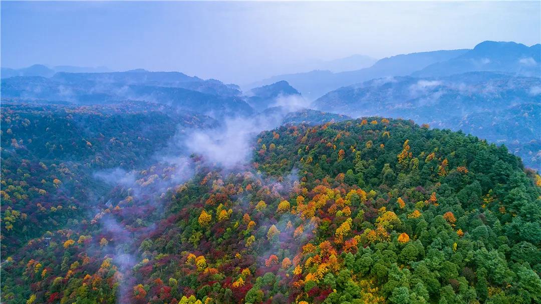 小草壩的秋天是熱烈的,也是唯美的。薄霧是秋天小草壩的必備品,無論是陰天、雨天,還是晴天,這里總籠罩著淡淡的煙靄,如青煙,似薄霧,朦朧著,迷離著,時聚時散,時消時凝,飄飄悠悠,好一副清閑之態。
