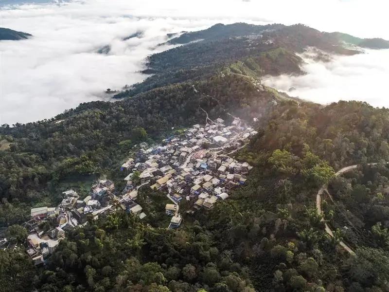 基諾山峰巒疊嶂,谷地幽深,景色優(yōu)美。入冬的早晨,當(dāng)?shù)谝豢|陽光灑在山梁上時(shí),山谷中的韻味便一股腦噴涌出來,形成千姿百態(tài)的云海,山林、綠野、人家都被云海漸漸浸潤(rùn)、點(diǎn)彩,身處其間,如臨幻境。