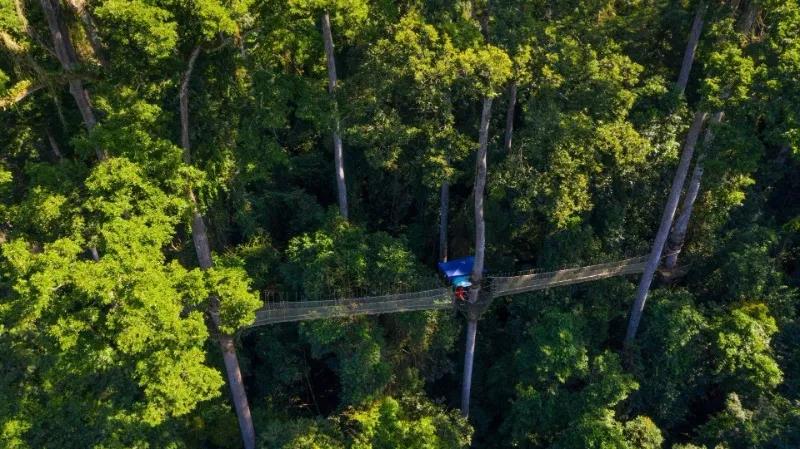 在高空樹冠走廊看藤蔓根莖盤根交錯