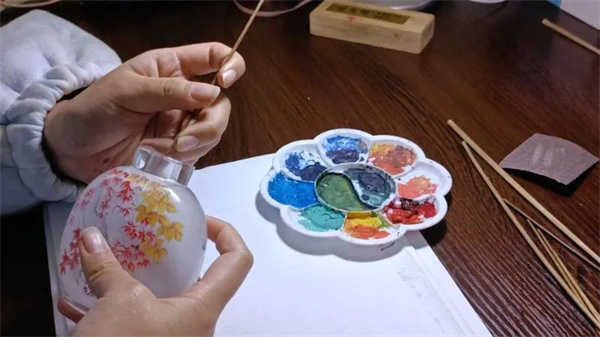 依托旅游大省的市場背景,滇派內(nèi)畫的產(chǎn)品也聚焦于旅游商品。在堅(jiān)守傳統(tǒng)工藝的基礎(chǔ)上,根據(jù)消費(fèi)者的需求,在原有的把玩、觀賞價(jià)值上不斷創(chuàng)新,設(shè)計(jì)具有實(shí)用性的作品。掛件、筆筒、茶葉罐、香水瓶等一系列融合傳統(tǒng)技藝,又不乏時(shí)代感的“伴手禮”不斷加入滇派內(nèi)畫家族,利用抖音、微信公眾等新媒體平臺來推廣滇派內(nèi)畫,并不斷參加“高端私人訂制”和各類展會、博覽會,全力推廣滇派內(nèi)畫,廣受各界好評。