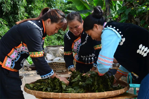 過去,春夏采摘的嫩茶葉大部分做成普洱茶或者綠茶,售賣后換取生活費,茶農舍不得喝,就把秋后的老葉子制作成帕卡茶自己喝。老葉子葉桿長甜味足,消炎降火,對于吃鑼鍋飯的農戶來說再合適不過,帕卡茶就這樣傳承下來了,還逐漸發展出了獨特的加工工藝和用陶罐煨茶喝茶的方法。帕卡茶制作工藝現已列入普洱市非遺傳承項目。下面,讓我們跟著江城帕卡茶傳統手工制作技藝傳承人張麗娟一起,看看地道的帕卡茶是怎么制作出來的吧。