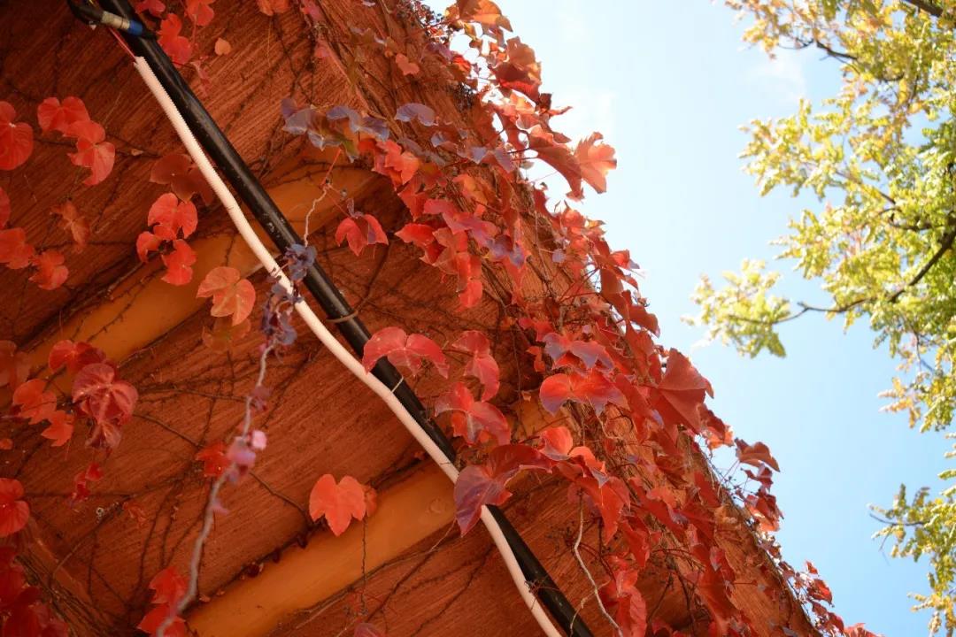 攀爬在斑駁墻壁上巴掌大的葉子,悄悄地爬滿一面墻,火紅的顏色愈演愈烈,就等著最后一陣秋風,把它們吹落到地。