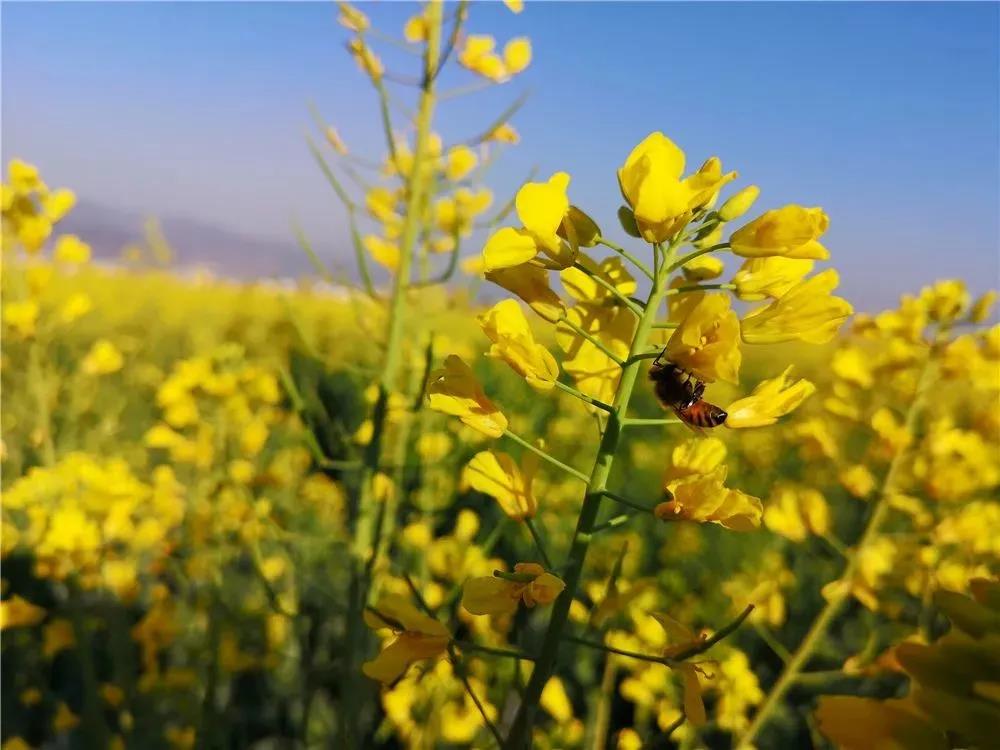 古人云:“東方為春,春者,萬物之所出也”,春天,一個讓萬物柔軟的季節(jié)。每一年春天到來之際,正是油菜花盛開的時節(jié),在云南,油菜花作為生存能力堪比小強的職務,無論是山川溝壑,還是房前屋后,油菜花總是可以隨風生長開放,隨處可見一幅幅迷人的田園風光美景,金黃的油菜花競相開放,花香四溢、沁人心脾,引得蜜蜂、蝴蝶流連其間,一丘丘、一片片、一簇簇、一朵朵,隨著微風起伏蕩漾,放眼望去宛如一片金色的海洋……