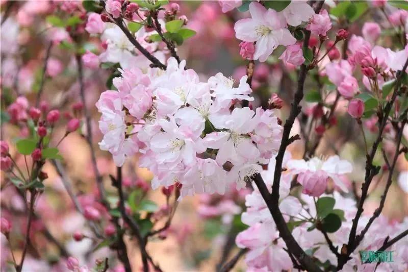 每年3月,海棠花總是如約綻放,一朵朵的海棠花簇擁在一起,與湛藍的天空交相輝映,滿園繁花似錦,一片粉色爛漫。