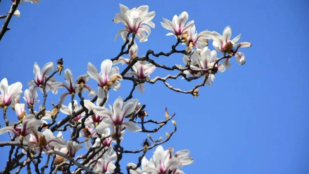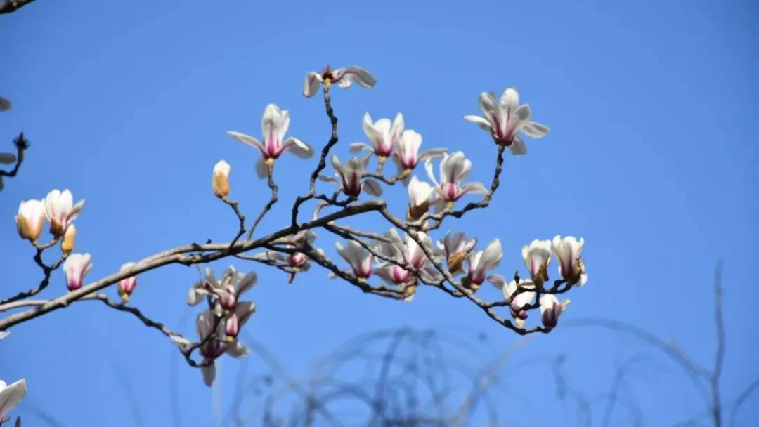 玉蘭花顏色多樣,或粉嫩或潔白,潔白素雅的玉蘭花冰清玉潔,像極了超然于物外的雪蓮,粉色的玉蘭花在和煦陽光照耀下,向展翅欲飛的粉蝶,輕盈靈動,落落大方,在藍天的映襯下,素靜溫婉、嬌羞可人。