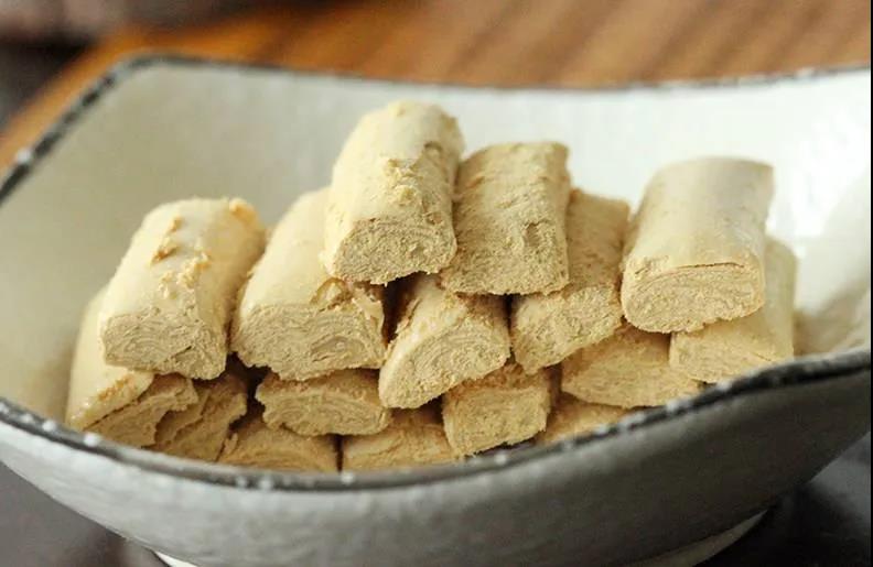 豆末糖是云南通海歷史悠久的傳統甜點,以云南特有的大豆,經過精心挑選、焙烤、粉碎,配以當地生產的飴糖和其他物料,經高溫熬制、糖膏與豆末多次折疊、精心制作而成。