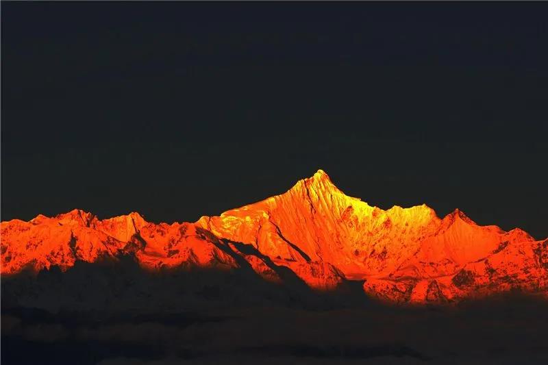 雪嶺火峰是云南滇中第一峰,山勢雄偉,海拔4344米,位于東川區。在晚霞的映照下,遠眺雪山呈現瑰麗的桔紅色,燦爛如火,異常壯美,因此得名。