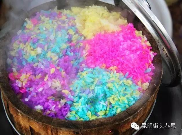 花米飯是布依人的特色美食,糯米飯配以野生植物色素,有紅、紫、黑、白、黃五種顏色,吃個飯也能如此詩情畫意。