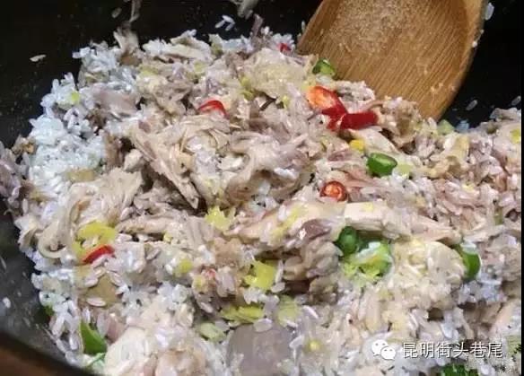 雞肉爛飯佤族語稱“布安納亞”,是佤族菜譜中最著名的一道菜,也是佤族待客的上等佳肴,因其比稀粥要稠一些,有經過加工的雞肉混合,故俗稱雞肉爛飯。