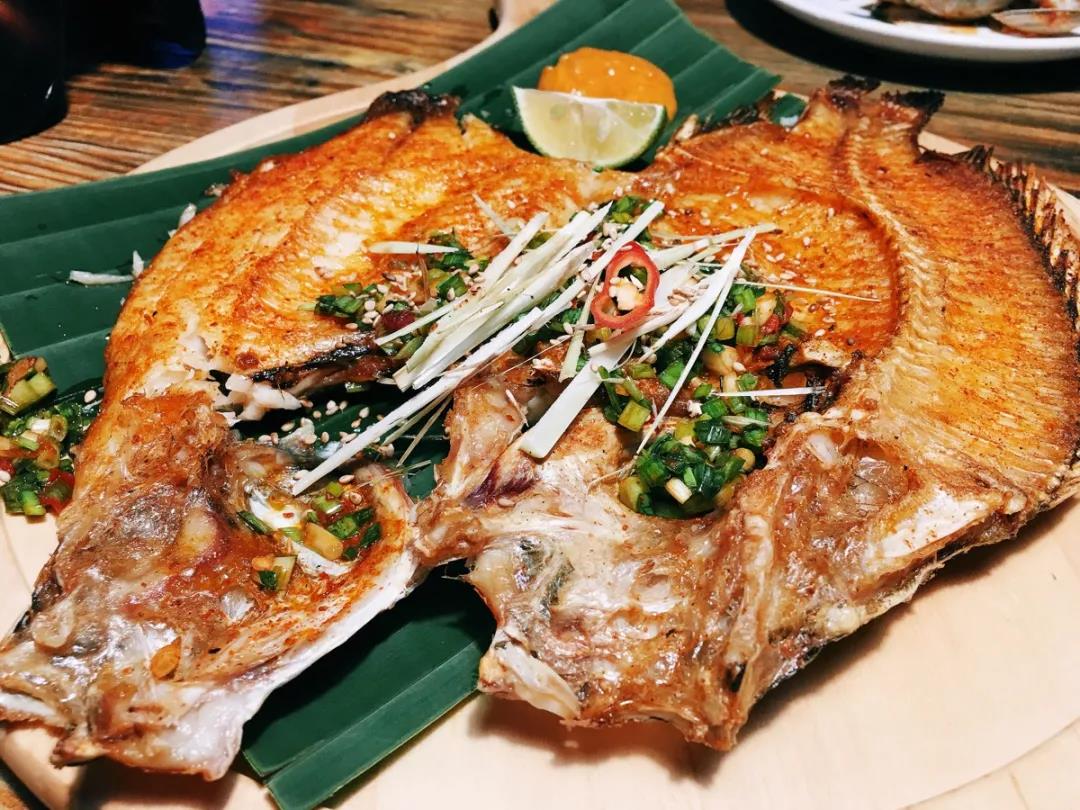 河口的燒烤攤一般就在魚塘不遠,魚是當天的新鮮魚,加上山上現(xiàn)摘的香茅草,野芫荽,蔥姜和醬油腌制30分鐘,上架用櫟碳火烘烤至焦黃上桌,然后沾著用干小米辣和酸醋做的作料吃。